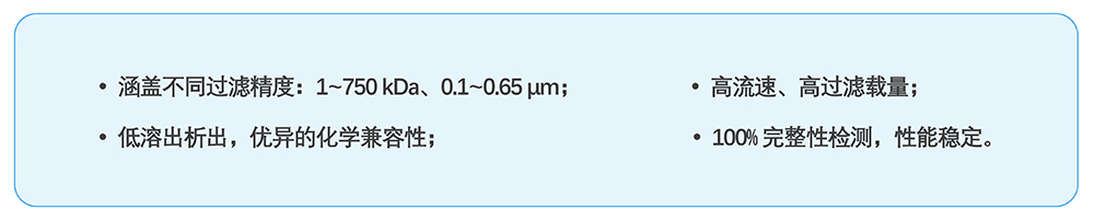 中空纖維膜絲采用改性聚醚砜(mPES)制備,抗污染性能強;非對稱梯度孔結構及均一孔徑保證高過濾精度的同時能獲取更高通量,提高產(chǎn)品收率。中空纖維膜柱采用符合醫(yī)療級別的外殼材料,生物相容性優(yōu)異,在滅菌環(huán)境中穩(wěn)定性優(yōu)良;選用的膠黏劑粘接強度高,耐熱性、耐化學性及生物相容性優(yōu)良;同時采用優(yōu)化的注膠工藝,注膠精度高,產(chǎn)品無缺陷。