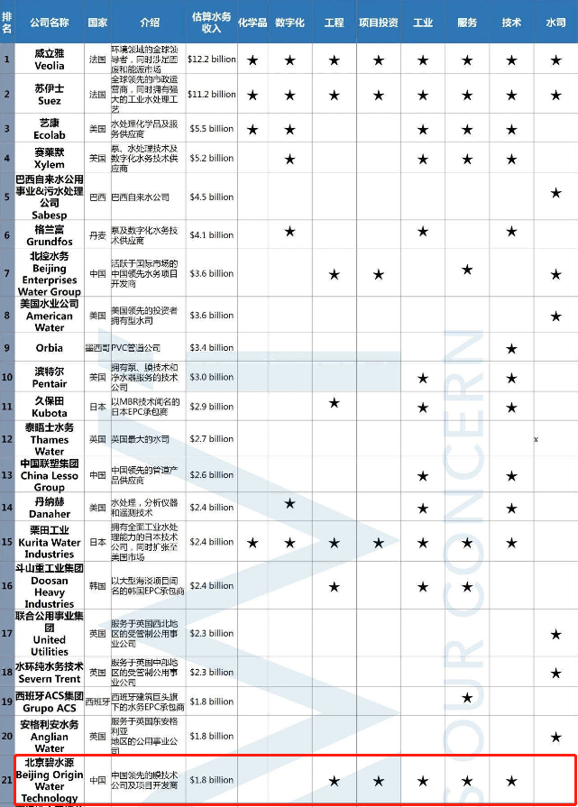 在這份“全球水務(wù)領(lǐng)域營(yíng)收TOP40公司排名”榜單中,法國(guó)最大的私營(yíng)水務(wù)運(yùn)營(yíng)商、美國(guó)最大的工程技術(shù)公司、巴西最大的私營(yíng)水務(wù)特許經(jīng)營(yíng)商和英國(guó)最大的受監(jiān)管類水司均位列其中,碧水源在國(guó)際水務(wù)市場(chǎng)與國(guó)際水務(wù)巨頭進(jìn)一步拉近實(shí)力差距,影響力顯著提升。