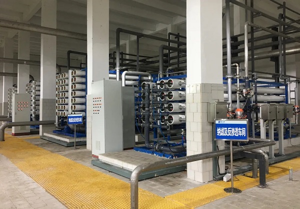 本工藝設(shè)計在能耗及產(chǎn)水率等方面優(yōu)于傳統(tǒng)“超濾-反滲透”雙膜工藝,在極低的操作壓力下實現(xiàn)高水通量和高脫鹽率,在滿足用戶對水質(zhì)要求的前提下,更好的節(jié)能降耗,處理出水達《地表水水環(huán)境質(zhì)量標準》(GB3838-2002)中Ⅱ類標準,出水輸送給周邊電廠等企業(yè)回用,減少其對自來水的使用量,對解決青島地區(qū)水環(huán)境污染、水資源短缺具有借鑒意義。
