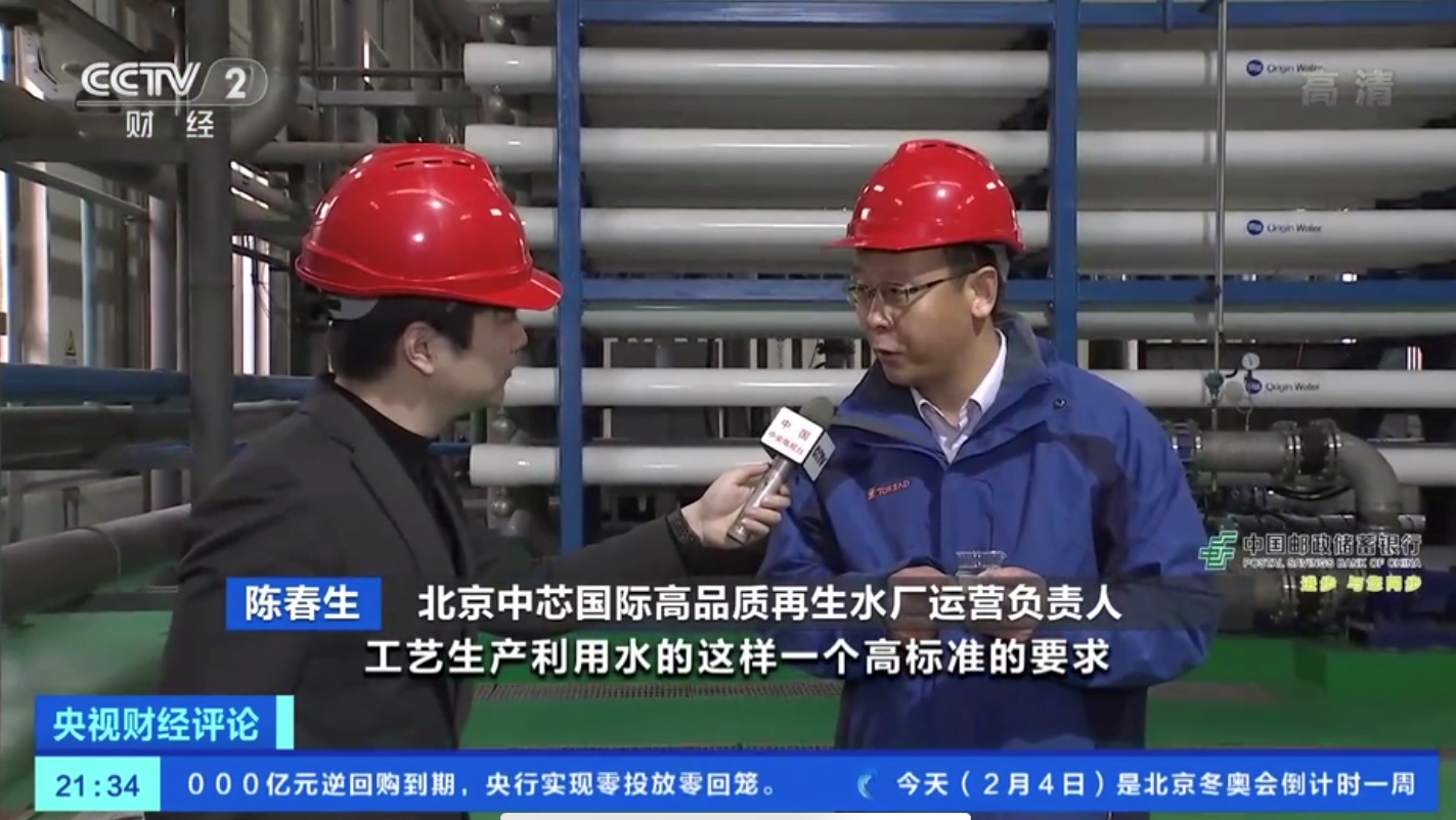 節(jié)目以北京中芯國際高品質(zhì)再生水廠運(yùn)營負(fù)責(zé)人(碧水源副總經(jīng)理)陳春生介紹“CMF-RO”雙膜技術(shù)的高標(biāo)準(zhǔn)出水水質(zhì)和用途為開篇,邀請了國務(wù)院發(fā)展研究中心資環(huán)所副所長常紀(jì)文、央視特約評(píng)論員王冠一起討論污水再生利用的潛力、市場前景、政策實(shí)施亟待打破的障礙等。